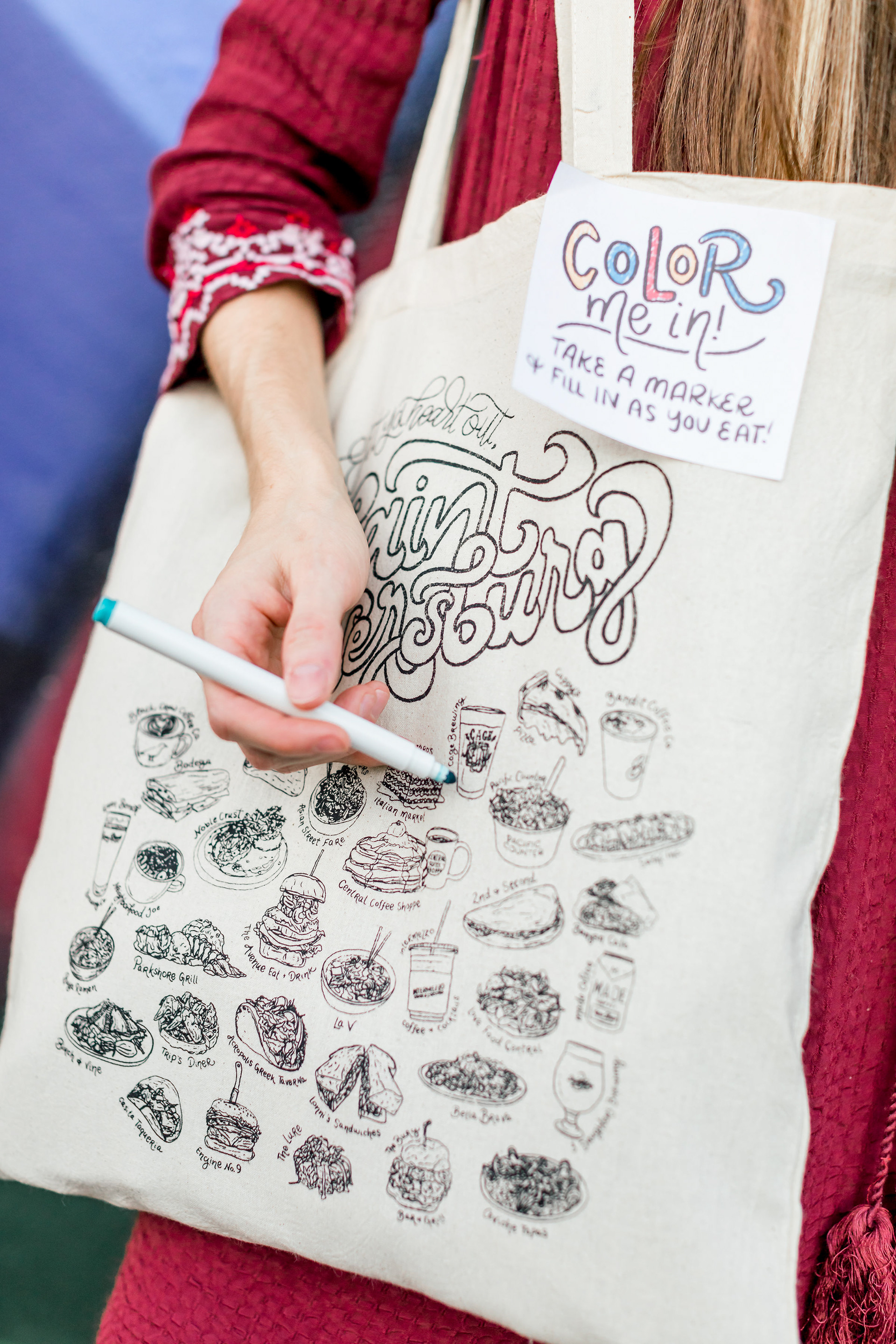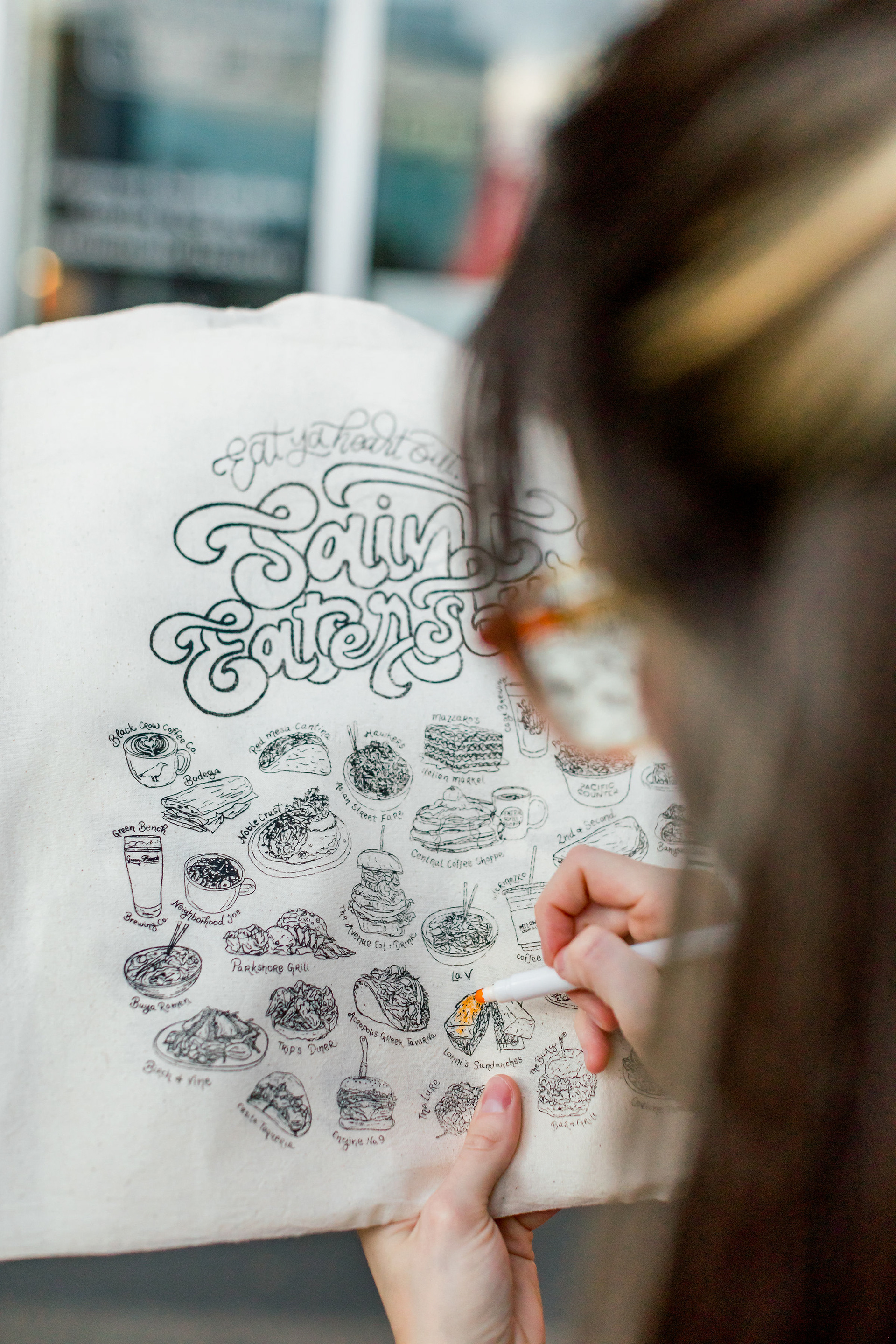 Project: Before the world shut down in March 2020, my incredibly genius husband gave me the idea to combine my love of our city + food: Saint Eatersburg. I immediately began to illustrate the most popular dishes of restaurant staples in our area, and then came the best idea: to make it an interactive element by having people color in the places as they eat at them!